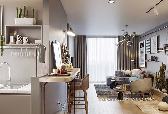 Imagem 2 – A integração de ambientes favorece espaços pequenos, além de deixar os apartamentos decorados mais modernos.