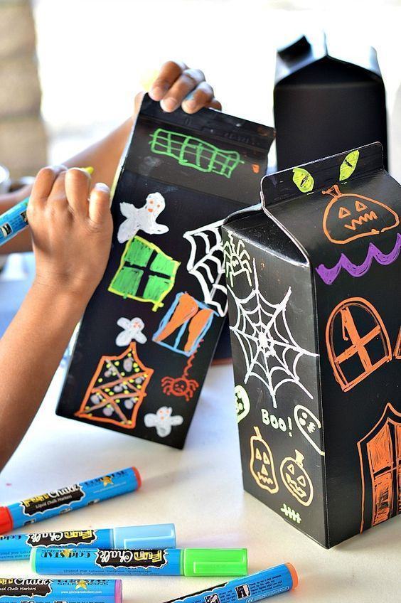 Imagem 12 – Caixinhas de leite transformadas em decoração para festa de Halloween.