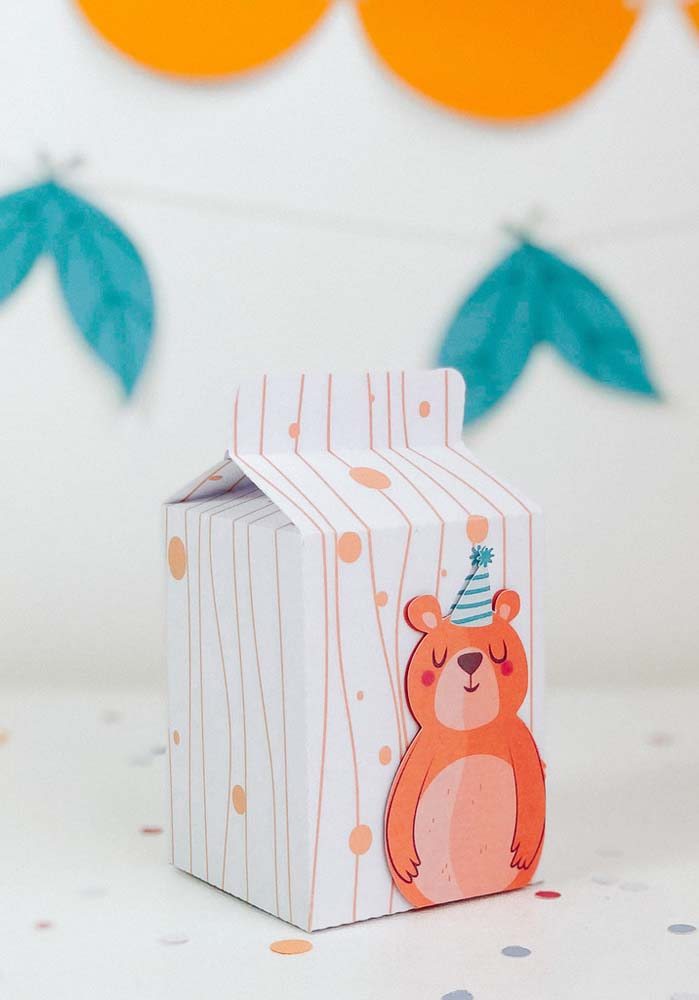 Uma outra opção comum é fazer embalagens para lembrancinhas diversas de festas ou chás de bebês utilizando as caixas de leite como base.