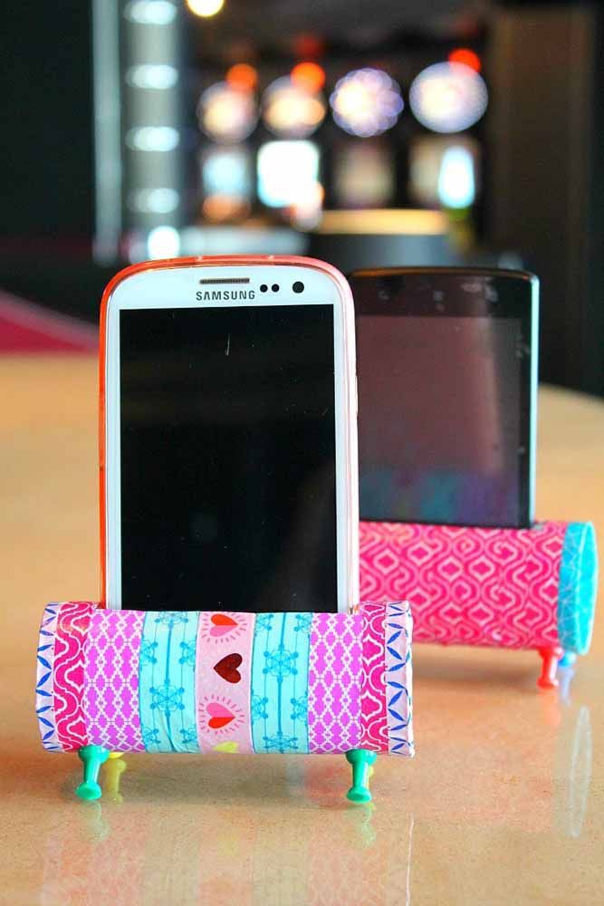 Imagem 38 – Porta celular feito com rolinhos de papel higiênico, muito criativo!