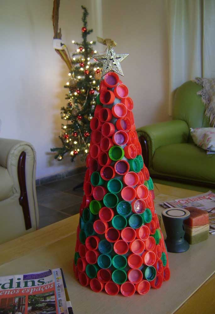 Imagem 23 – Árvore de natal ecológica feita com tampinhas de garrafa pet.