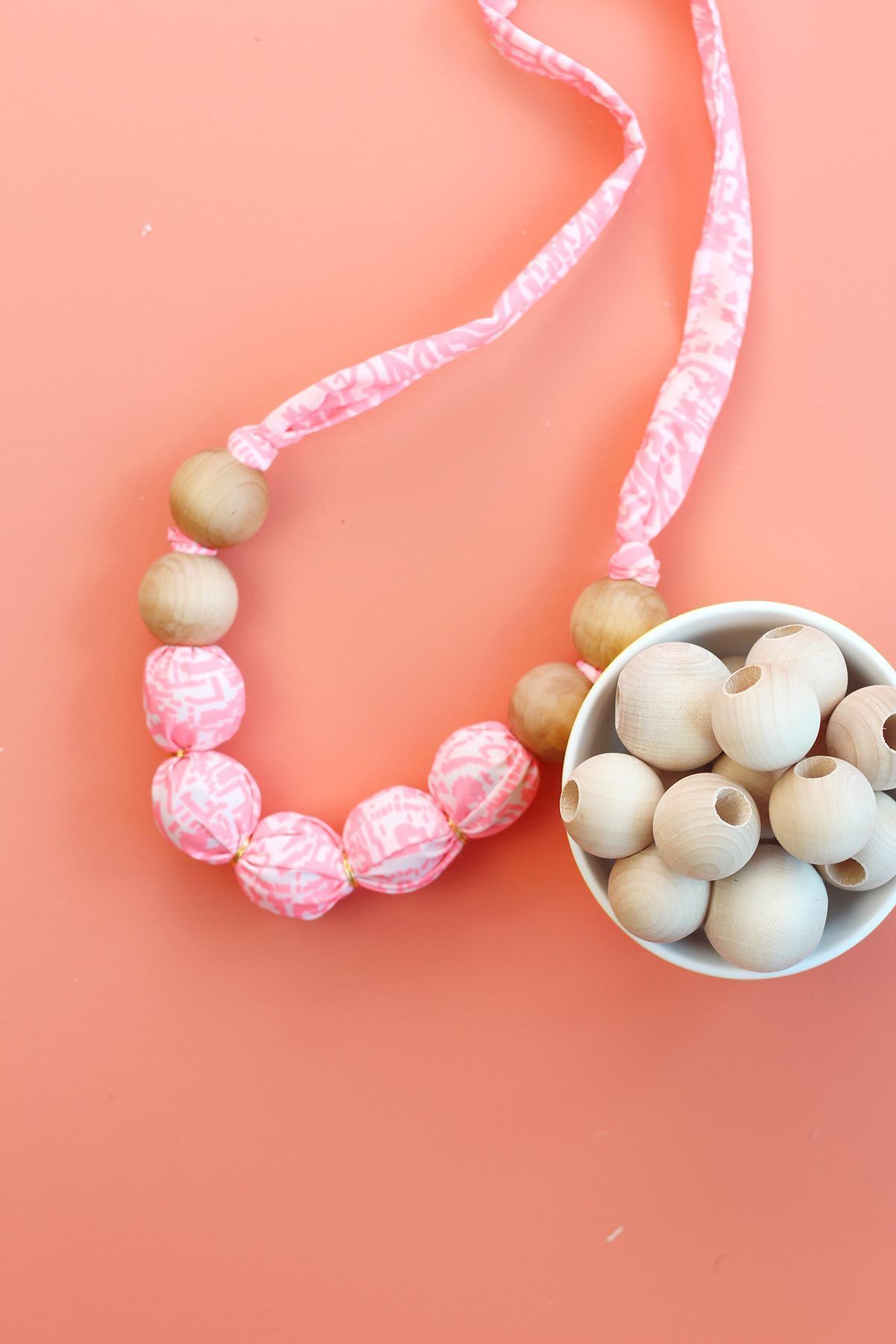 Imagem 45 – Colar com tecido e bolinhas de madeira.