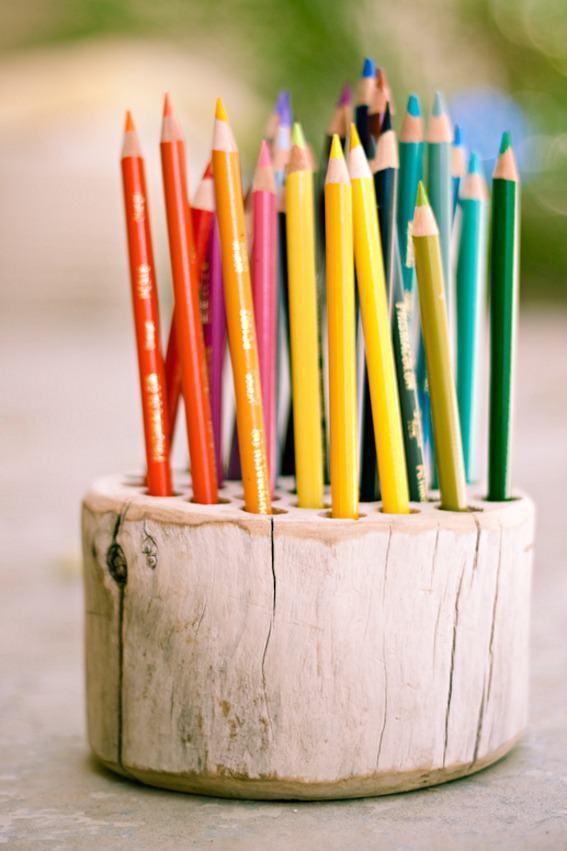 Imagem 29 – Porta lápis de madeira com vários furos para encaixar.