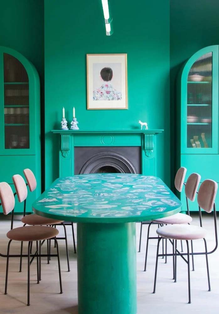 Outra proposta é uma design de interiores mais “chocante”, ou seja, para quem ama um ambiente cheio de contrastes! A dica é ver o aposto/complementar do Azul Tiffany, que seria o tom de vermelho e magenta. Além disso, vale apostar em tonalidades dessas cores que vão desde os claros até os intensos.