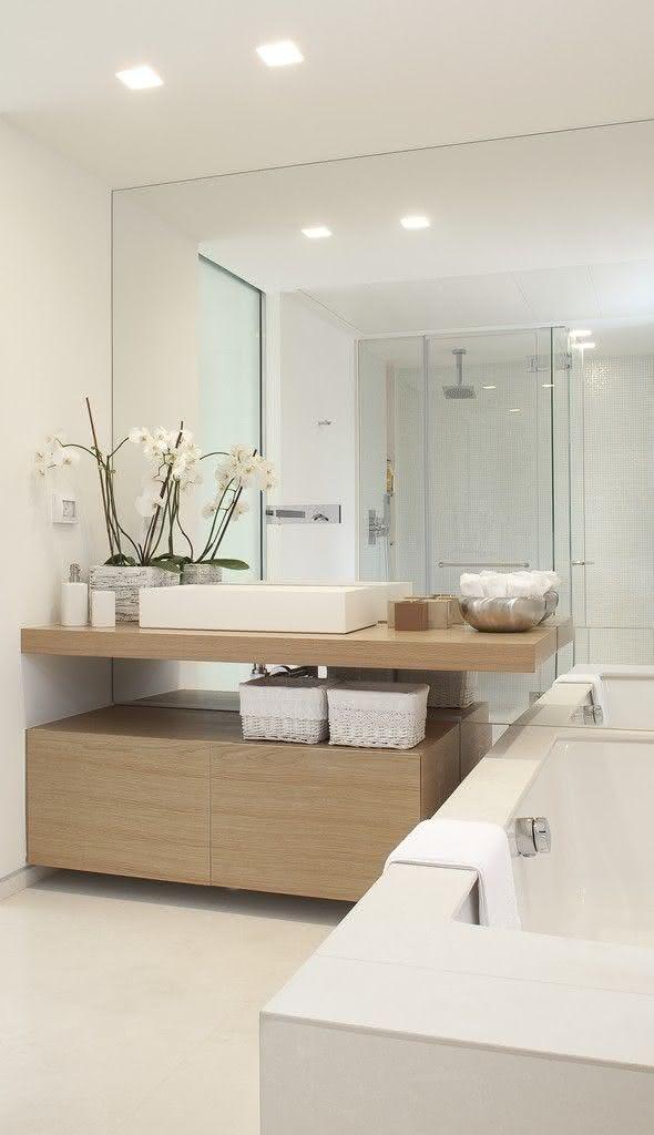 Imagem 12 – Para dar leveza ao banheiro, instale a bancada em apenas uma parte do espaço.