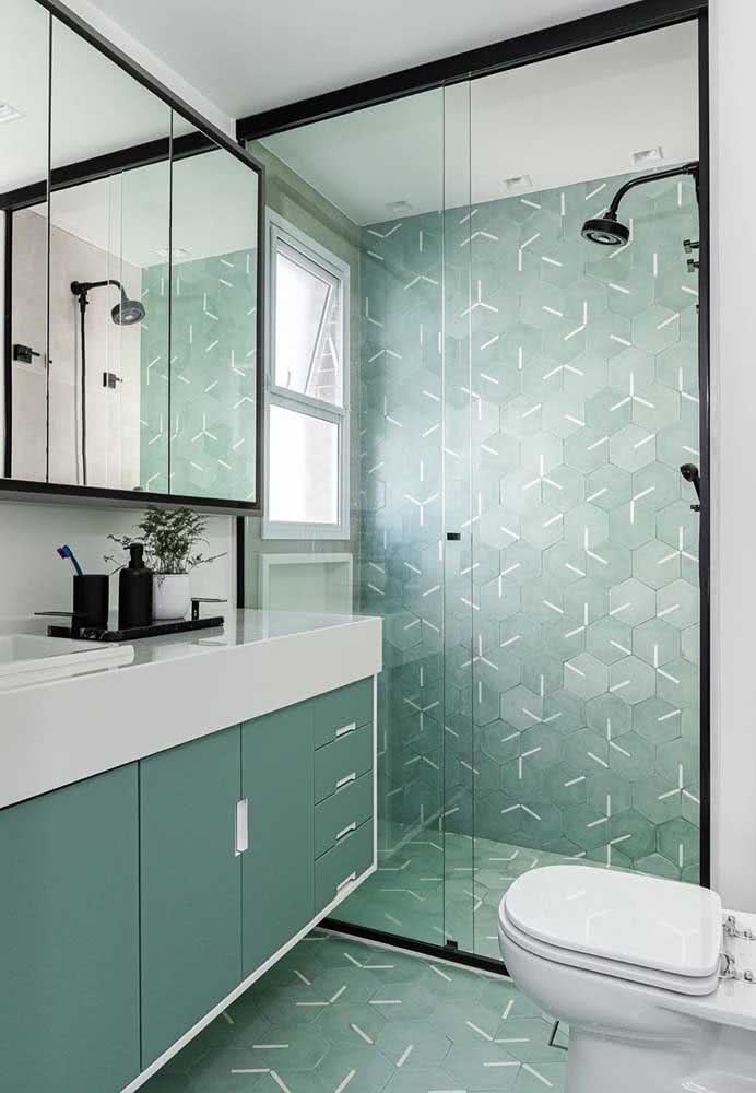 Imagem 19 – Banheiro de apartamento planejado em tons de verde: calmaria e tranquilidade.