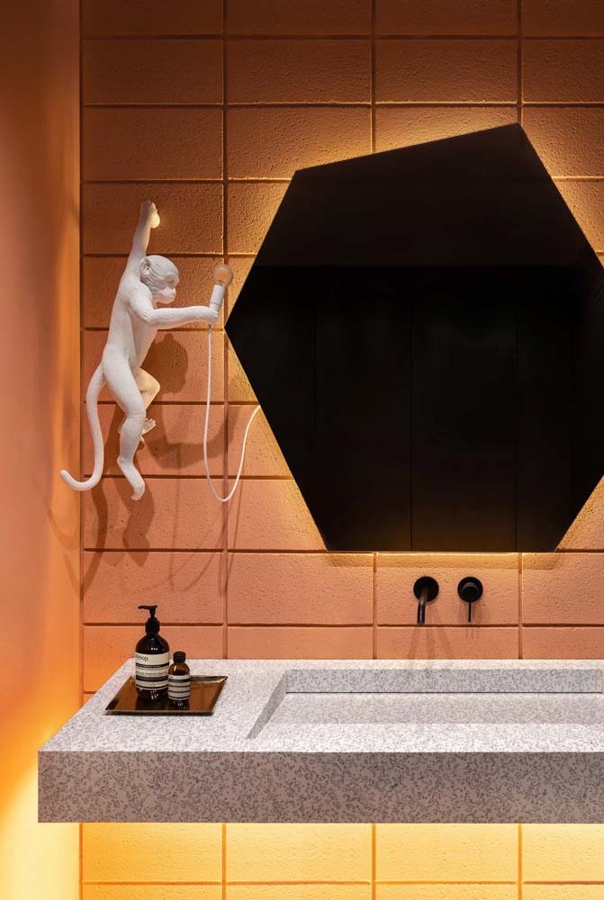 Imagem 29 – Em um projeto de banheiro escuro, aposte em uma iluminação adequada.