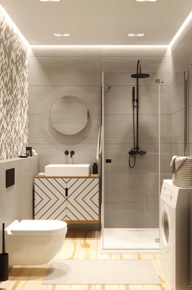Imagem 8 – Banheiro pequeno decorado com cinza na medida certa.