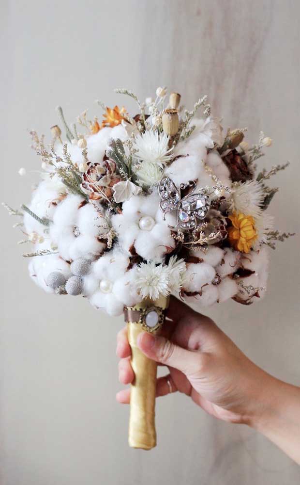 Imagem 20 – Que tal renovar os votos nas Bodas de Algodão? Como dica, use um buque com flores de algodão.