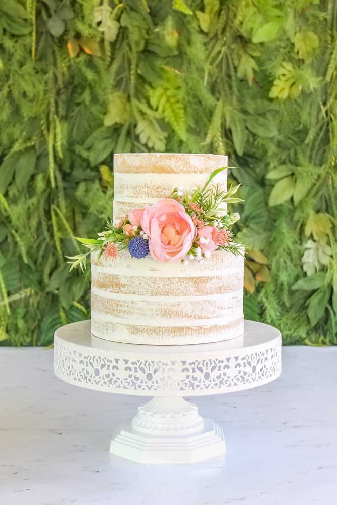 Imagem 29 – Também é possível fazer um bolo com efeito de naked cake, ficando bem natural.