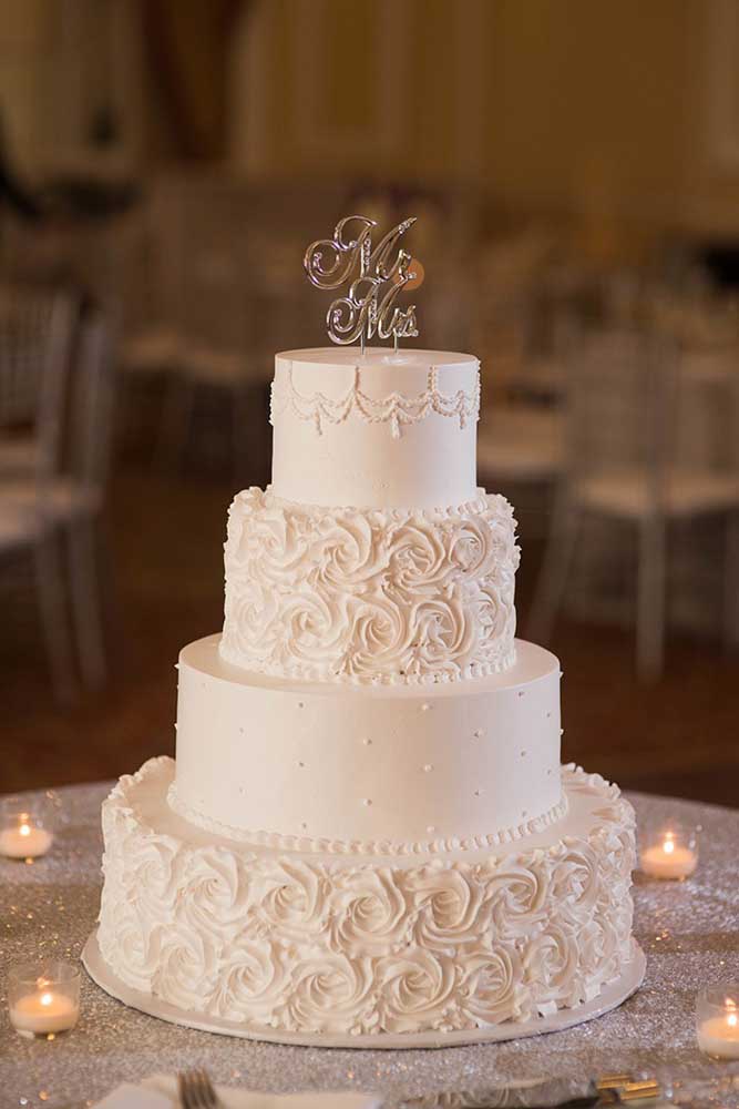 Imagem 39 – O bolo mais escolhido pelas noivas é o branco total que apresenta apenas alguns detalhes.