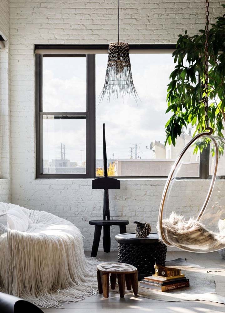 Imagem 18 – Olha como a bubble chair também fica linda na sala de estilo boho