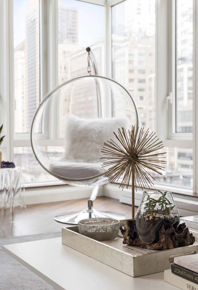Imagem 10 – A luz que passa pela bubble chair faz com que ela seja perfeita em ambientes pequenos.