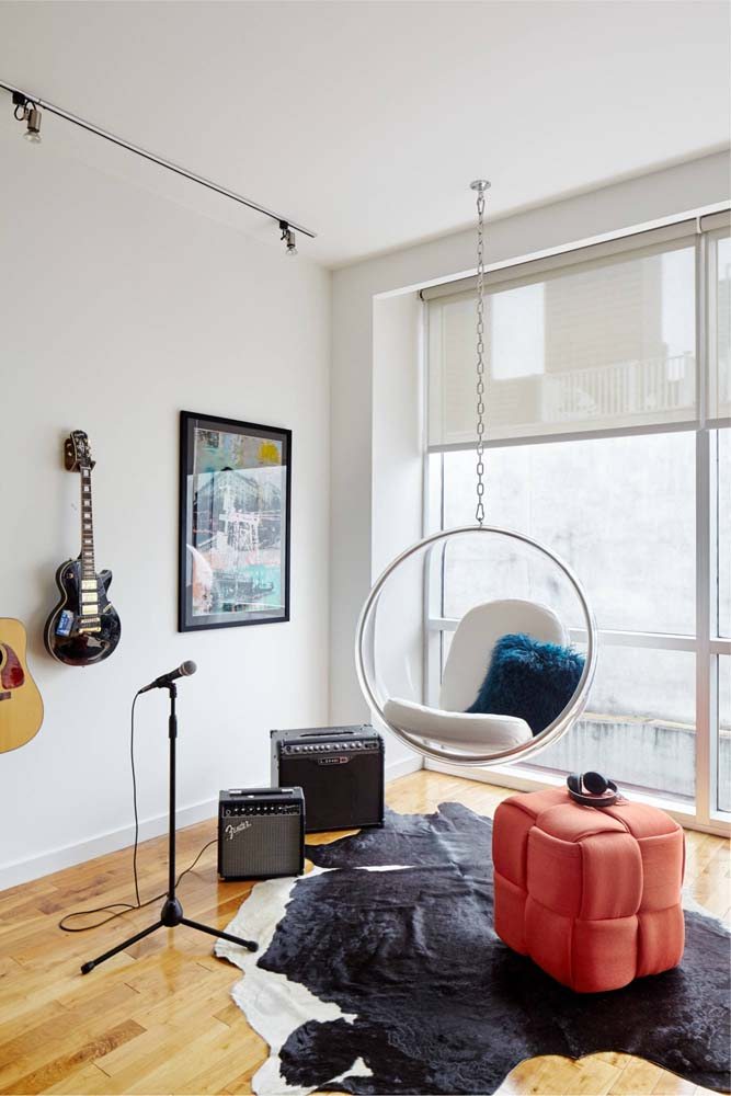 Imagem 44 – Inspiração de estúdio musical com a bubble chair como protagonista.