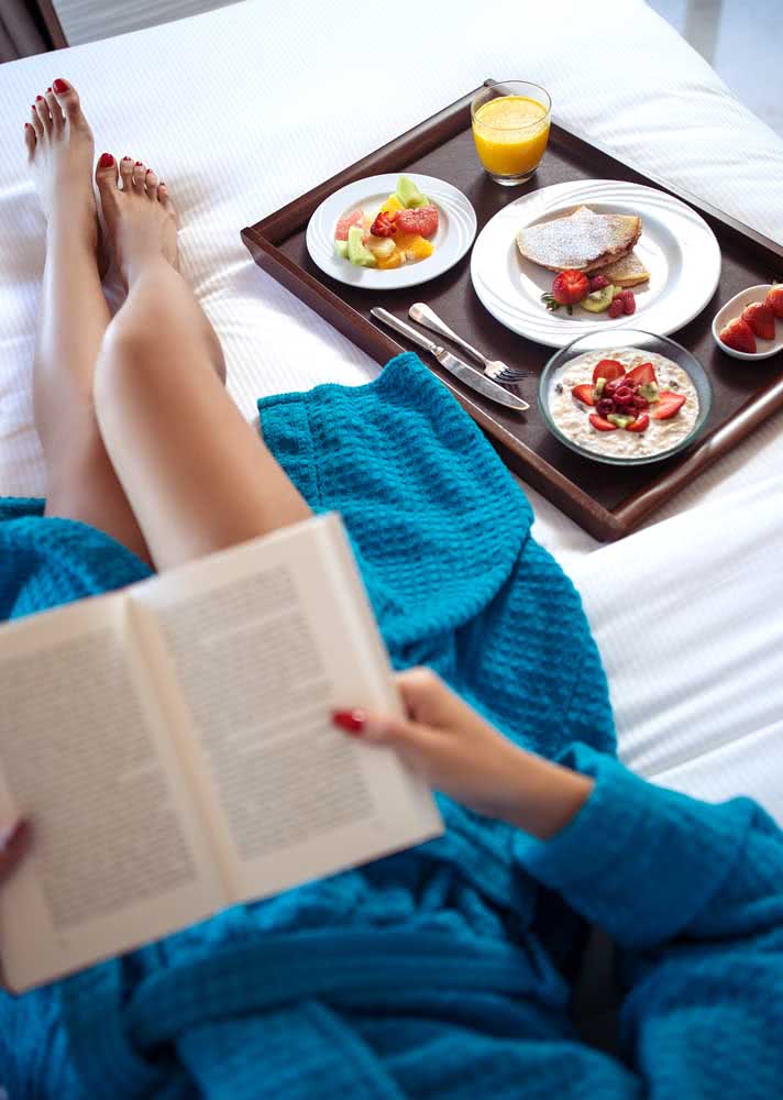 Imagem 18 – Café da manhã na cama acompanhado de um bom livro.