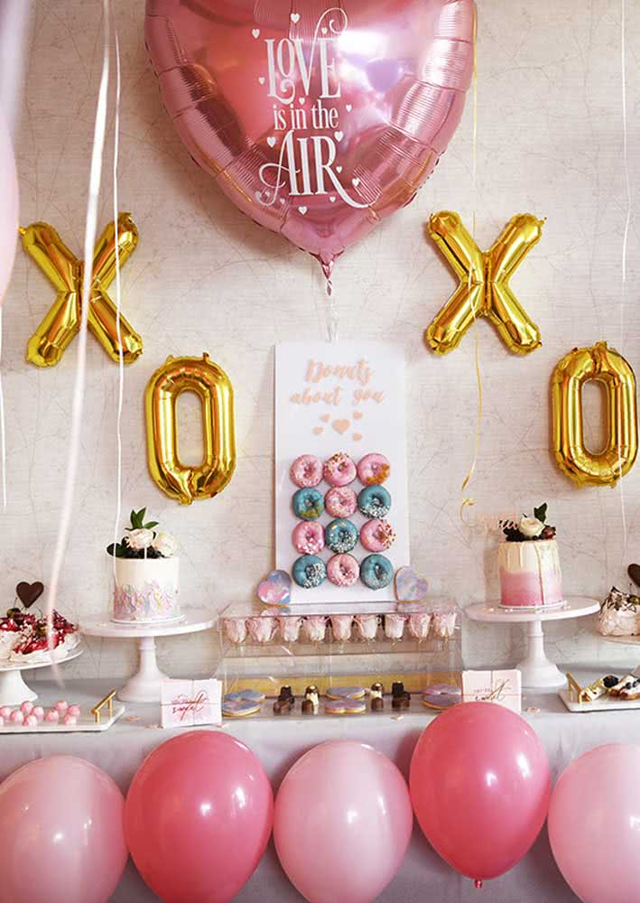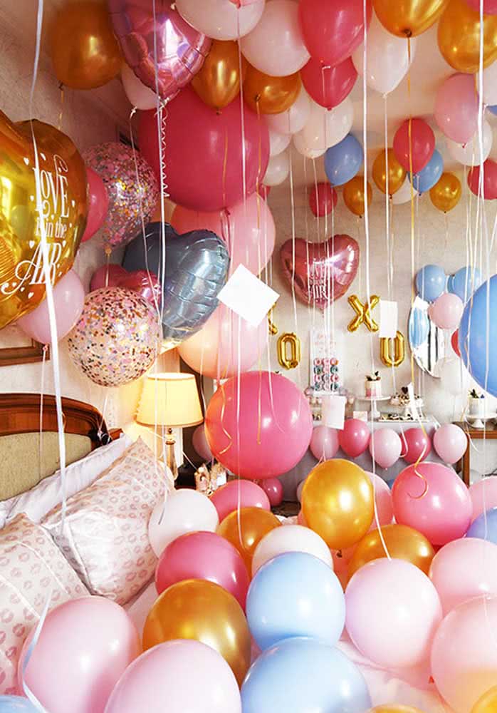 Imagem 3 – Café da manhã na cama para namorado: balões de coração completam a surpresa romântica.