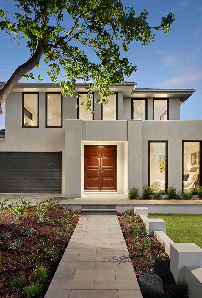Imagem 13 – Casa elegante de alvenaria com dois pavimentos e fachada minimalista.