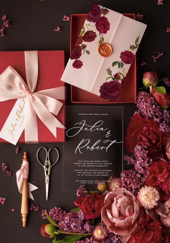 Imagem 41 – O convite marsala é parte essencial da criação da identidade do casamento.
