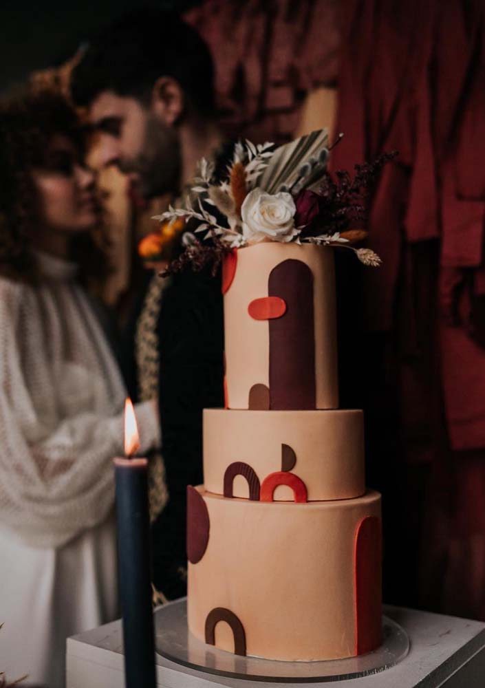 Imagem 30 – Uma ideia de bolo de casamento marsala moderno.