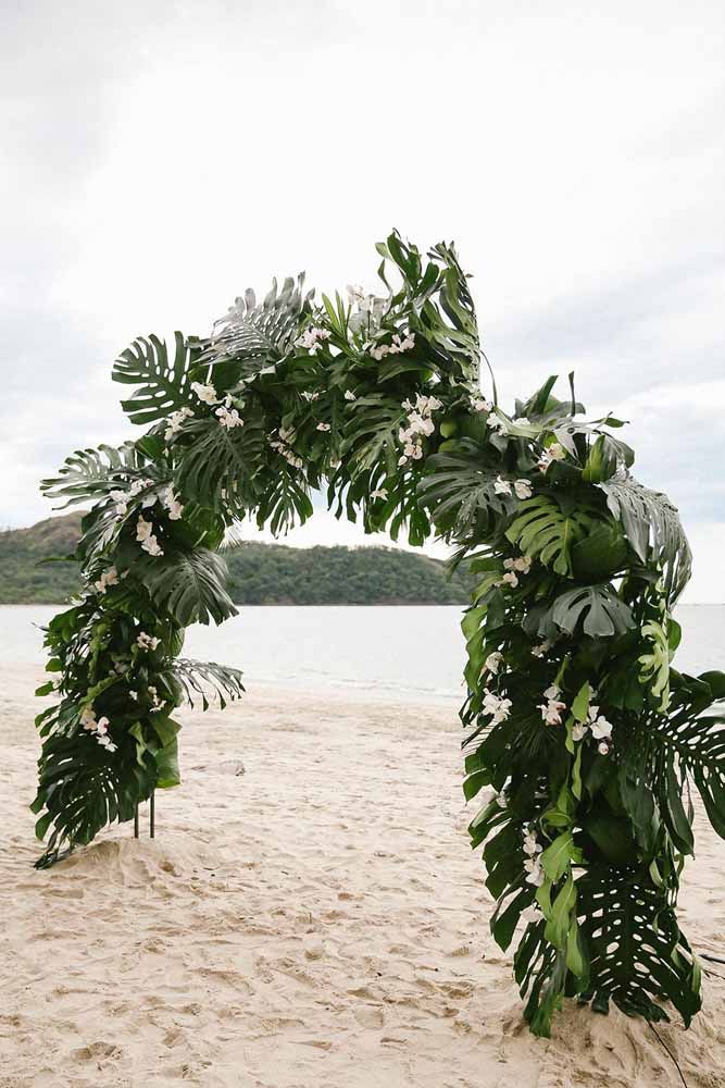 Imagem 8 – Folhas de plantas tropicais para ajudar a compor a decoração do casamento.