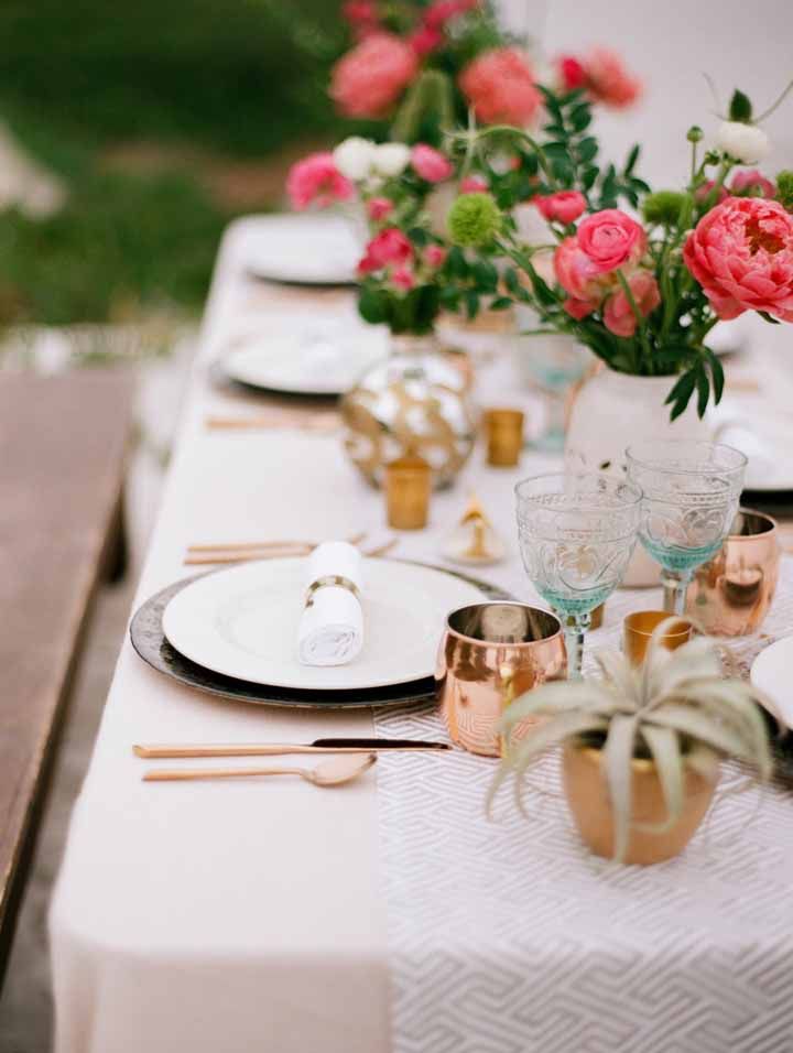 A decoração, assim como o traje da festa, deve ser simples e elegante. As cores claras são as preferidas. Aposte em tecidos leves para compor a decoração e flores que resistam ao vento e a temperaturas mais quentes, como rosas e helicônias.