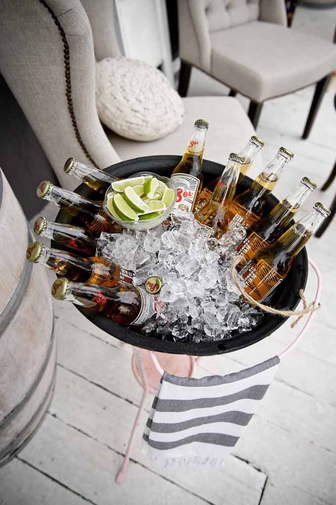 Imagem 50 – Cubos de gelos floridos decoram esse mini bar na areia.
