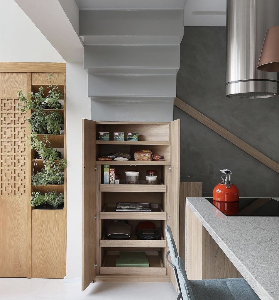 Utilize o espaço debaixo da escada para fazer um armário que pode ser utilizado para armazenamento geral ou de algum cômodo especifico.
