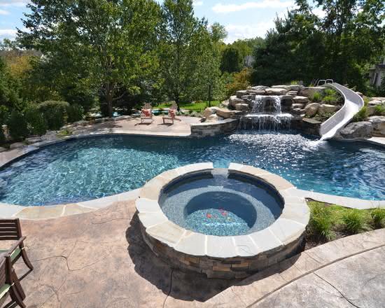 As cascatas são ótimas para decorar o ambiente externo e deixar sua piscina muito mais divertida e com ar sofisticado. Acessórios como luzes em led, fontes modernas e revestimentos na parede permitem transformar o espaço mais interessante. Os projetos de paisagismo colaboram para deixar o clima mais favorável a essa área de lazer.