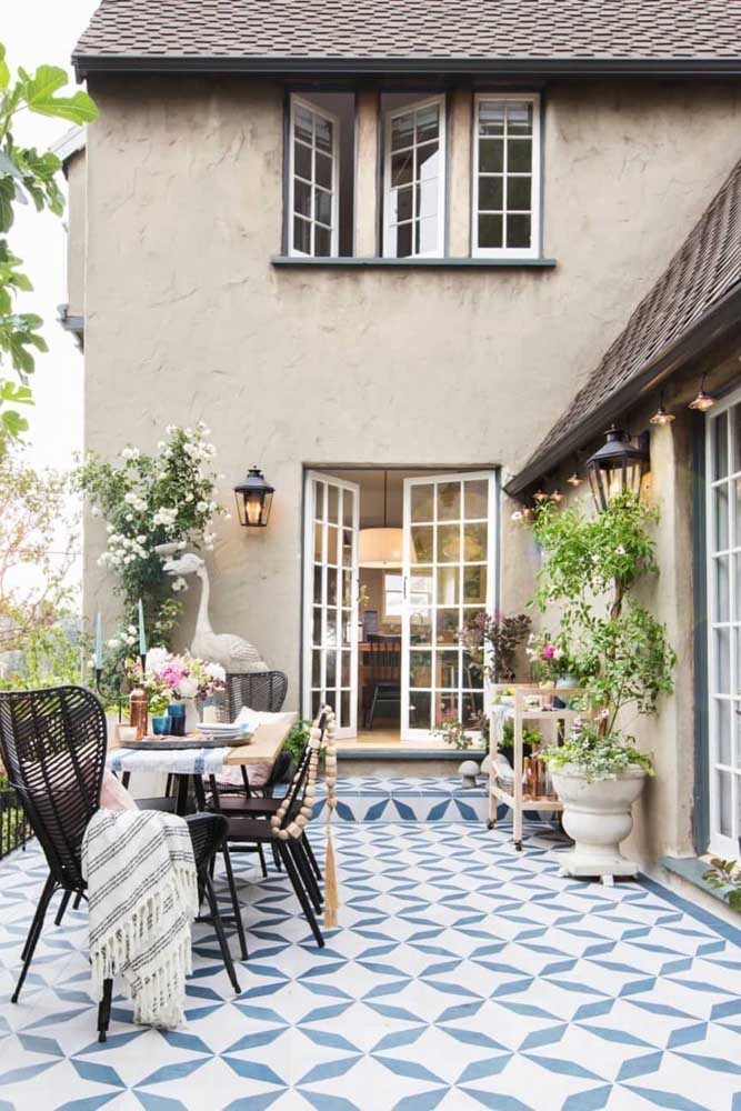 Imagem 20 – Um ladrilho hidráulico charmoso e receptivo para o lounge externo.