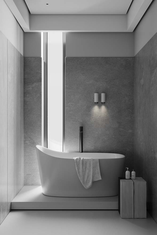 Outro modo ainda mais interessante é aplicar o cinza claro em materiais que possuam essa cor naturalmente.