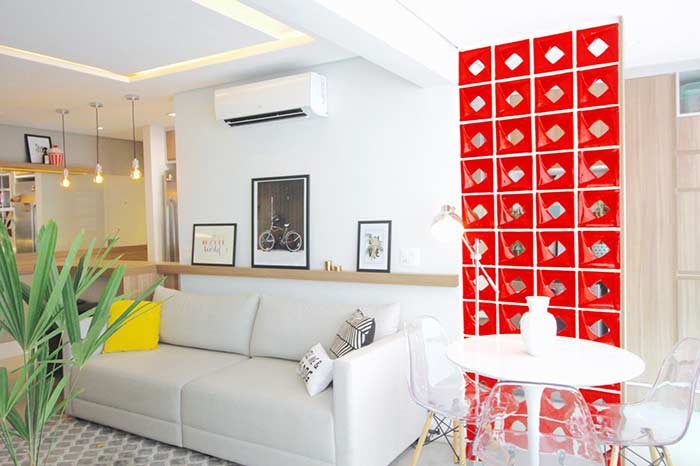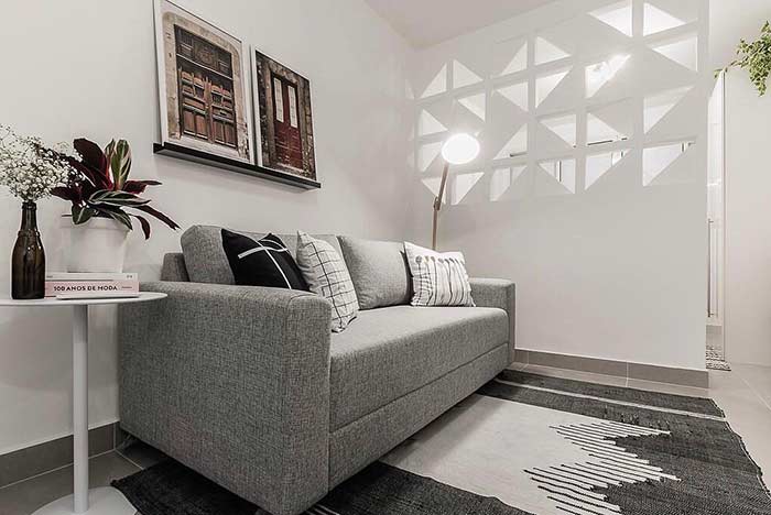 Imagem 11 – Cobogó com vazado simples quadrado e na mesma cor da parede para seguir a unidade de sala.