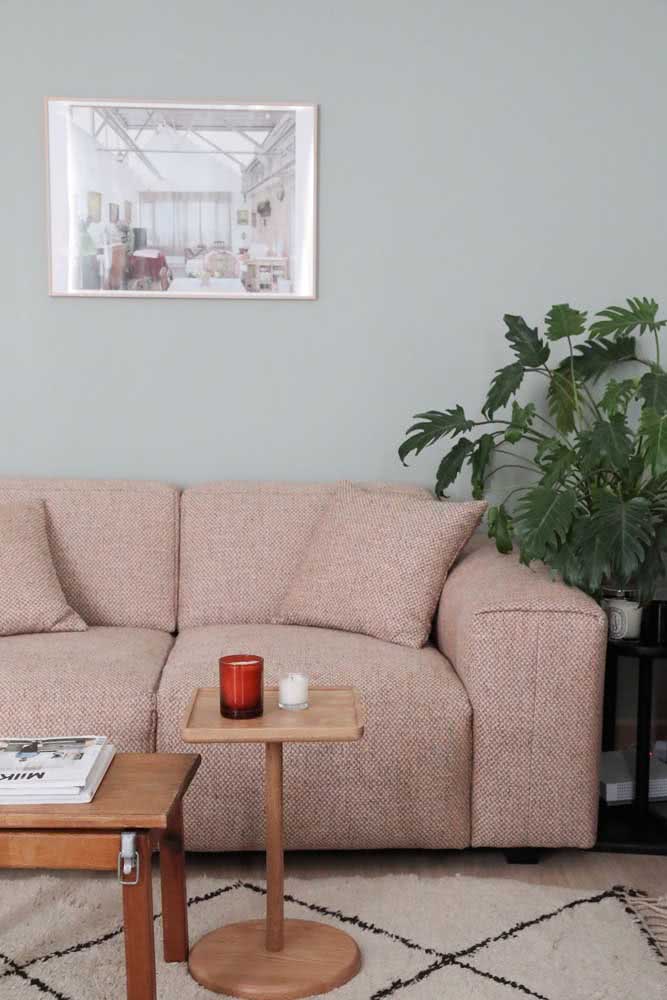 Imagem 17 – Já aqui, a inspiração é o sofá nude rosé.