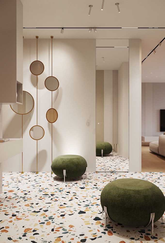 Imagem 44 – Parede nude e piso de granilite. Nada mal!
