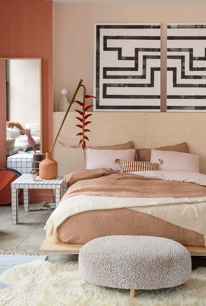 Imagem 1 – Cores de tinta para quarto de casal: terrosas e aconchegantes.