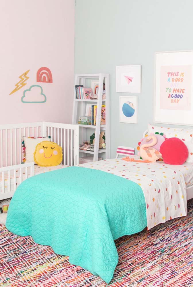Imagem 13 – Cores de tinta para quarto infantil: suaves e delicadas em dois tons diferentes.