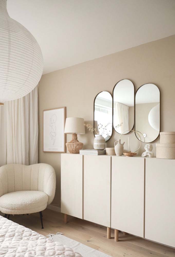 Imagem 59 – Já aqui, a ideia é combinar as cores de tinta para quarto com os espelhos.