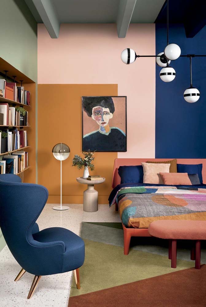 Imagem 10 – Aproveite as diferentes cores de tinta para quarto para fazer uma parede geométrica.