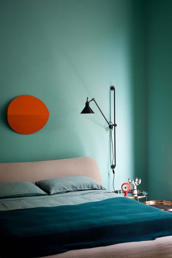 Imagem 2 – Já aqui, a dica é apostar na combinação de cores complementares entre a parede e a cama.