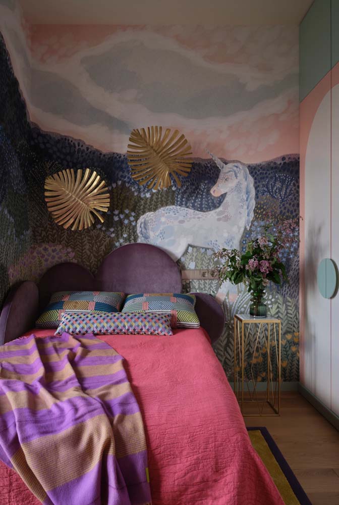 Imagem 22 – Um verdadeiro show de cores na parede desse quarto.