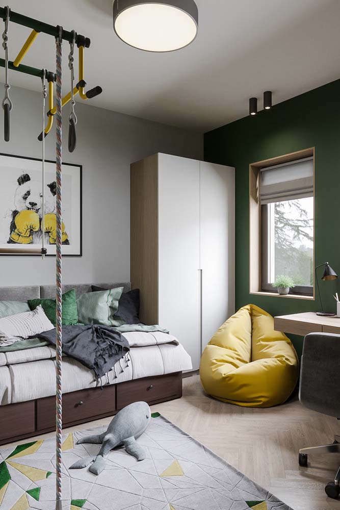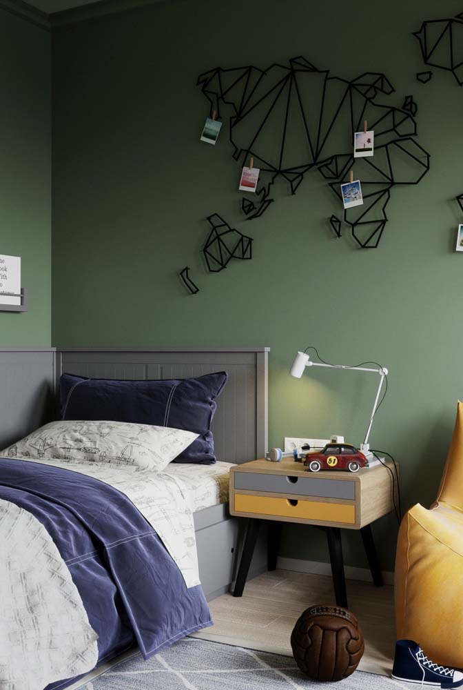 Imagem 23 – E o que acha de uma parede verde musgo para o quarto masculino?
