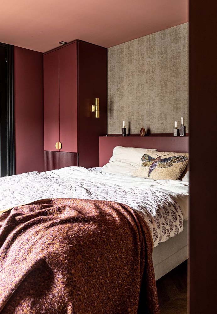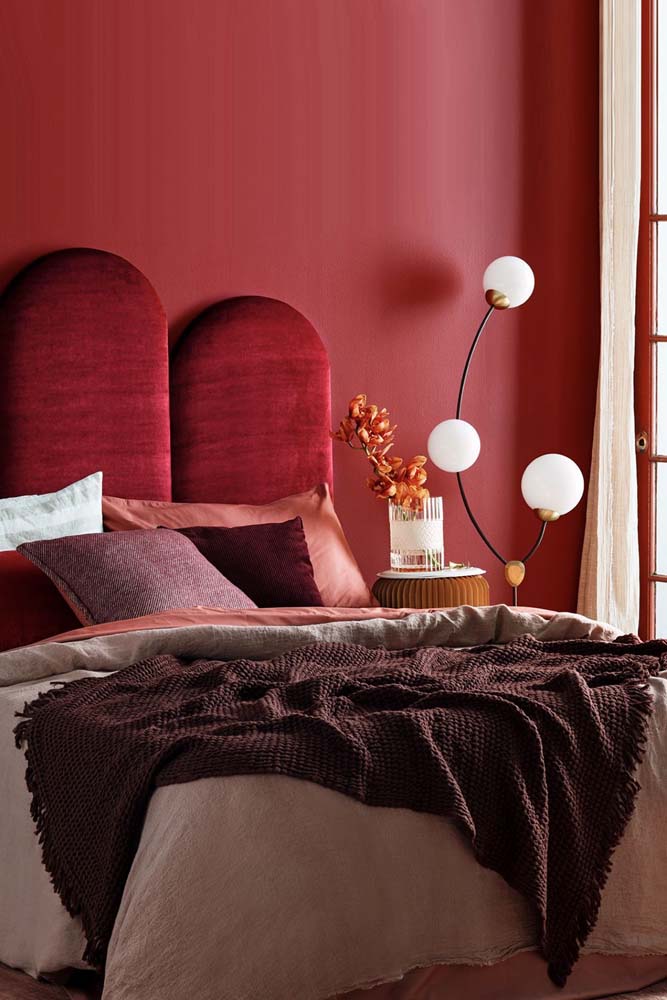 Imagem 5 – Que tal acender a paixão escolhendo cores de tinta para quarto de casal em tons de vermelho?