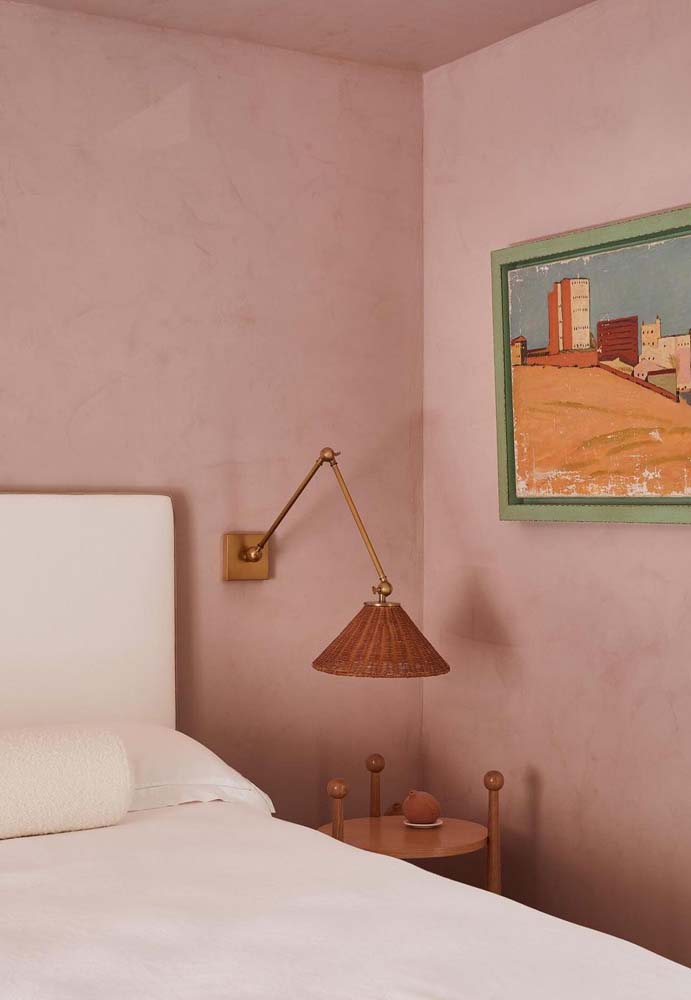Imagem 32 – Já aqui, a opção foi por um rosa terroso para as paredes e teto do quarto.