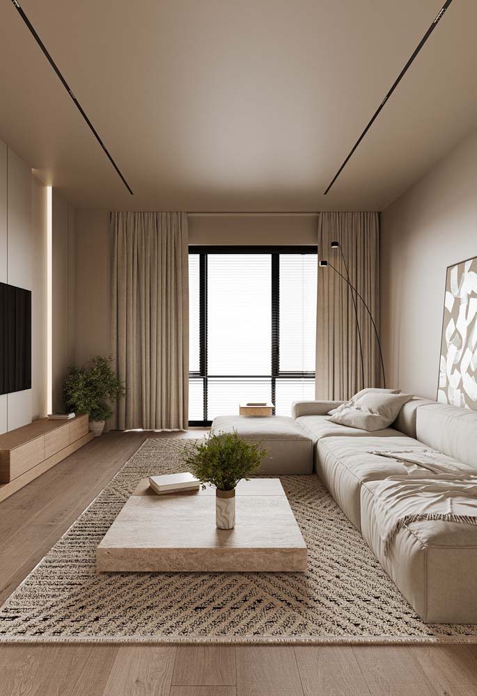 Imagem 31 – Opte pelo bege areia se quiser uma sala aconchegante.