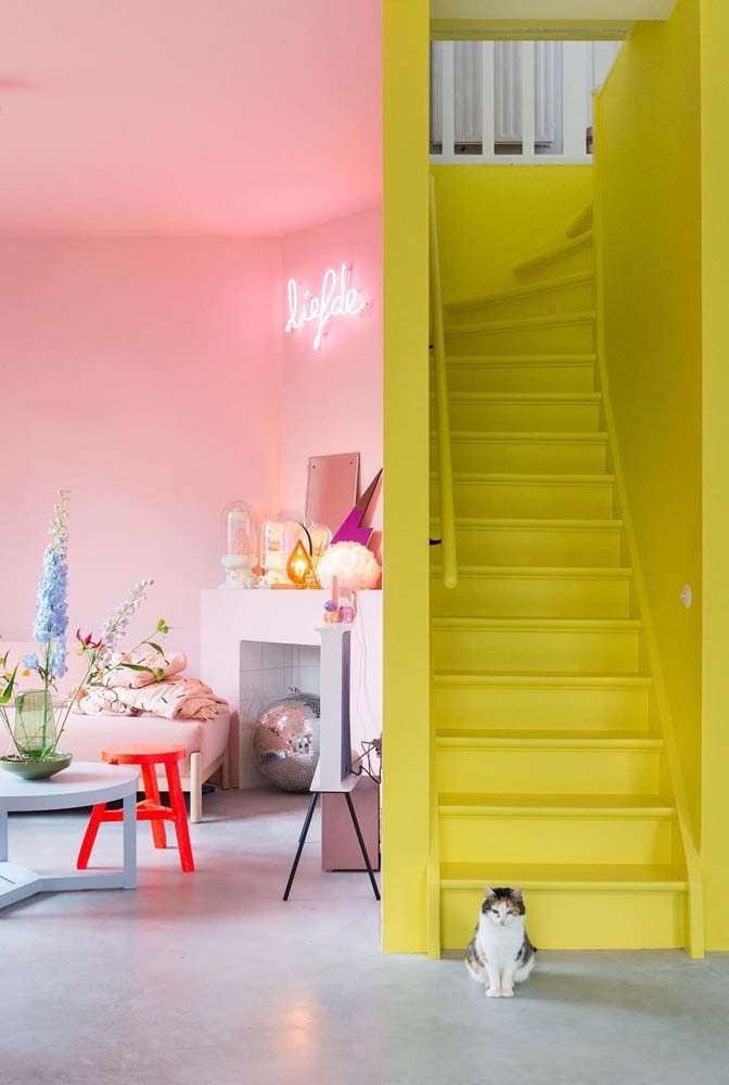 Imagem 1 – Vai uma escada amarela aí para combinar com a sala cor de rosa?