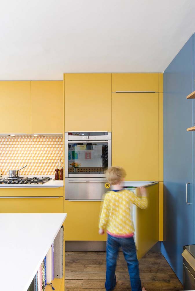 Imagem 43 – Saia um pouco do comum e invista em um armário de cozinha amarelo.