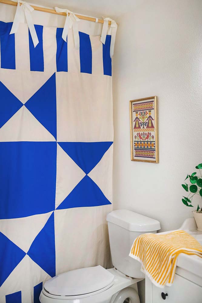 Imagem 29 – Quem disse que cortina para box não pode ser de tecido?