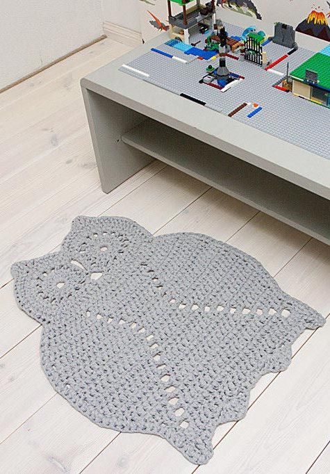 Tapetes e mantas em todos os cantos: Provavelmente como a maioria das pessoas conhece os itens feitos de crochê, embora sejam só uma parte do leque de possibilidades que um barbante e uma agulha podem oferecer, entre elas: o jogo americano, passadeira, colcha e outros;