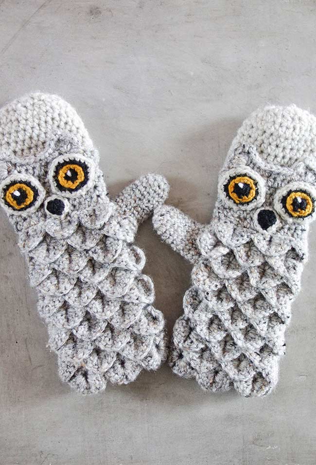 Essas luvas requerem um pouco a mais de habilidade no crochê, mas é uma ideia que com certeza vai encantar todo mundo e ainda pode ser feita com diversos animais como referência.