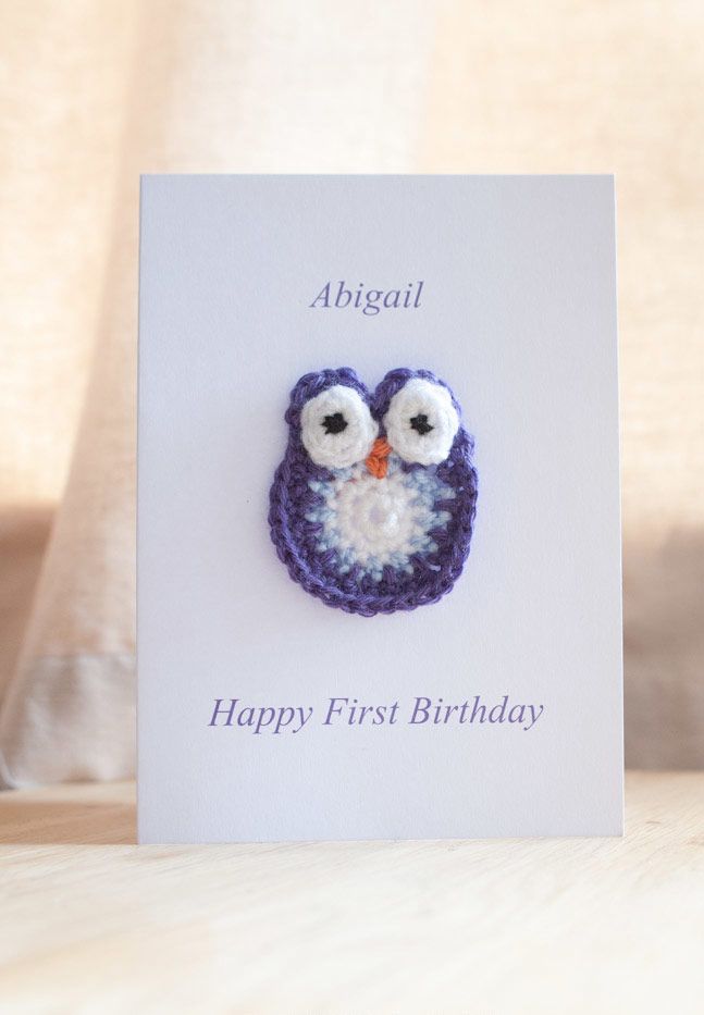 Imagem 53 – Convite de aniversário corujinha – aplicação de crochê em papelaria.