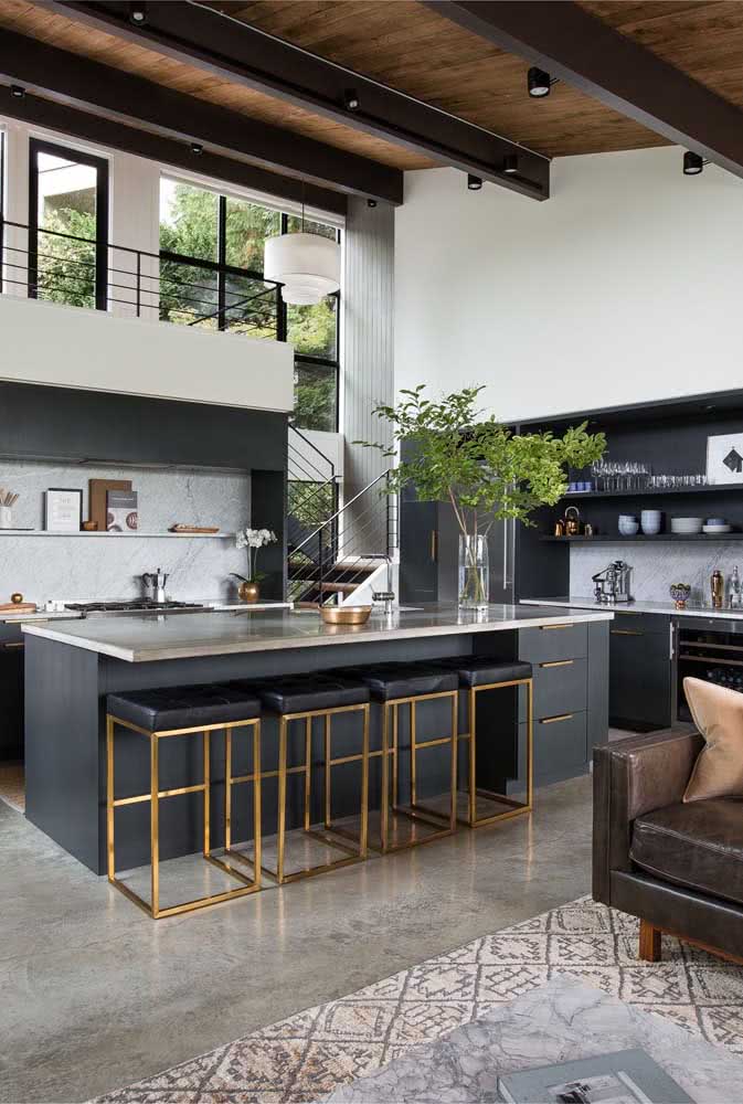Imagem 24 – Um pouco de glamour e modernidade na decoração da cozinha conceito aberto.
